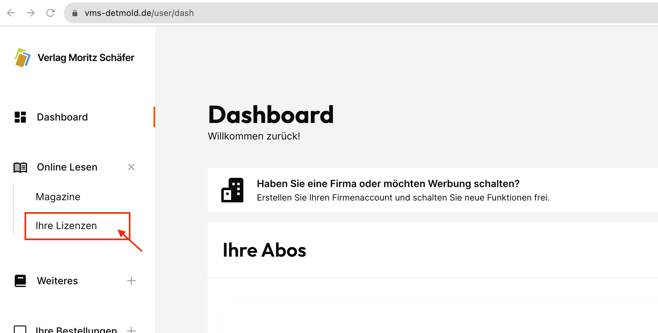 Im Menu finden Sie unter Online lesen > Ihre Lizenzen eine Übersicht Ihrer Lizenzen.